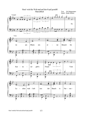 Heut wird die Welt mal auf den Kopf gestellt! - Sheet Music for piano + underlaid text Hardy Kickers