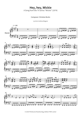 Hey, hey, Wickie - A Song from the TV series Wickie (1974) - Sheet Music for Piano Solo Christian Bruhn