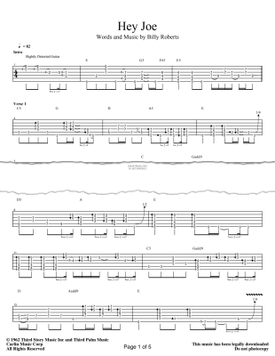 Hey Joe by The Jimi Hendrix Experience available in guitar tab download. Taken from the US version of their debut album Are You Experienced?