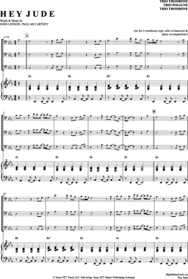 Hey Jude - Sheet Music for Trombone Trio + Piano The Beatles