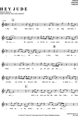 Hey Jude - Sheet Music for violin The Beatles