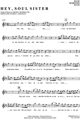 Hey, soul sister - Sheet Music for transverse flute Train