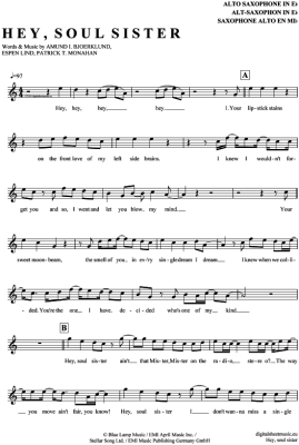 Hey, soul sister - Sheet Music for Alto Saxophone Train