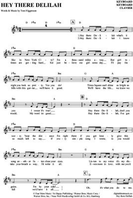 Hey there Delilah - Sheet Music for Keyboard Plain White T's