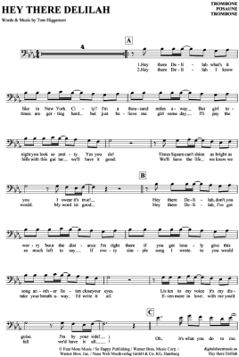 Hey there Delilah - Sheet Music for Trombone Plain White T's