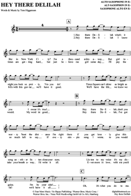 Hey there Delilah - Sheet Music for Alto Saxophone Plain White T's