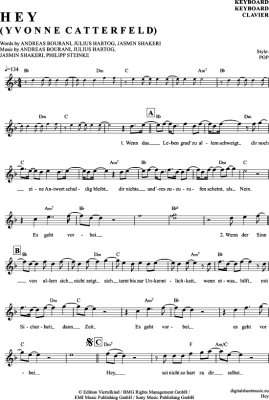 Hey - Sheet Music for Keyboard Yvonne Catterfeld