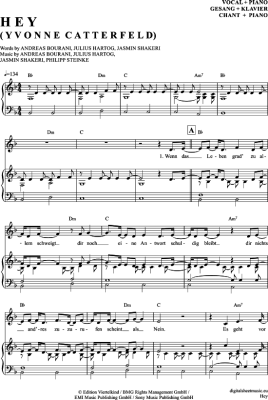 Hey - Sheet Music for Piano and Voice Yvonne Catterfeld