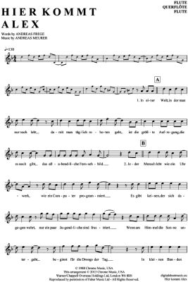 Hier kommt Alex - Sheet Music for transverse flute Die Toten Hosen