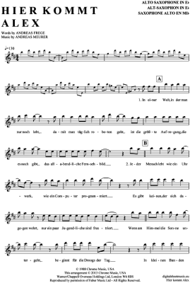 Hier kommt Alex - Sheet Music for Alto Saxophone Die Toten Hosen