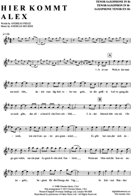 Hier kommt Alex - Sheet Music for Tenor Saxophone Die Toten Hosen