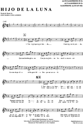 Hijo De La Luna - Sheet Music for Alto Saxophone Loona