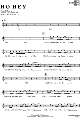 Ho Hey - Sheet Music for transverse flute The Lumineers