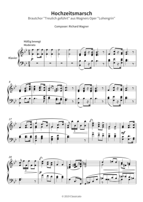 Hochzeitsmarsch - Brautchor Treulich geführt aus Wagners Oper Lohengrin - Sheet Music for Piano Solo Richard Wagner