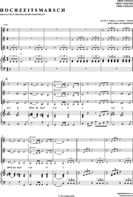 Hochzeitsmarsch - Sheet Music for violin trio + piano Felix Mendelssohn Bartholdy