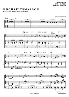 Hochzeitsmarsch - Sheet Music for piano accompaniment + melody Felix Mendelssohn Bartholdy