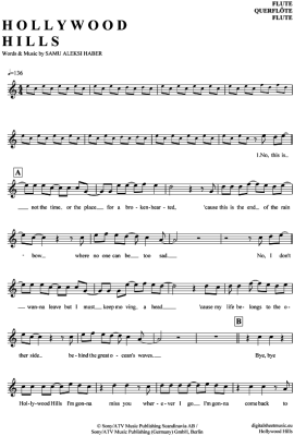 Hollywood Hills - Sheet Music for transverse flute Sunrise Avenue