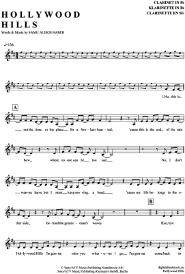 Hollywood Hills - Sheet Music for Clarinet in B-flat Sunrise Avenue