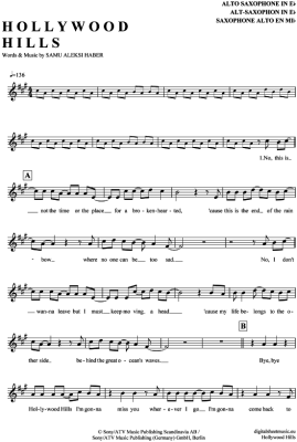 Hollywood Hills - Sheet Music for Alto Saxophone Sunrise Avenue