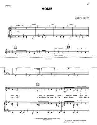 Home, written by Charlie Smalls, from 'The Wiz', arranged for voice and piano with guitar chords.