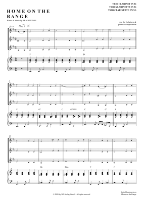 Home On The Range - Sheet Music for Klarinetten Trio + Klavier American Folk Song