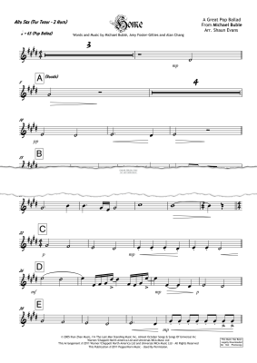 This is an Alto Sax part to replace Tenor Sax for the 2 Horn PepperHorn Collections arrangement of 'Home' by Michael Buble