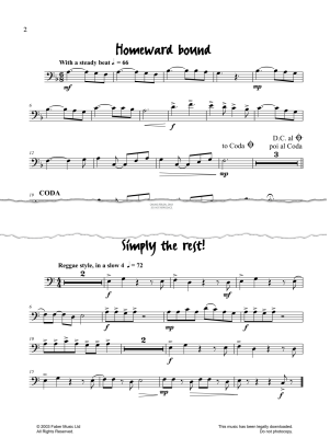 Homeward Bound, composed by Pam Wedgwood and arranged for trombone with piano accompaniment. This includes parts for Bass and Treble Trombone/Euphonium.