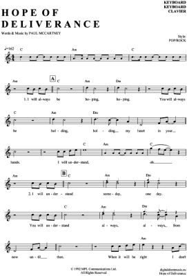 Hope Of Deliverance - Sheet Music for Keyboard Paul McCartney