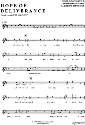 Hope Of Deliverance - Sheet Music for Tenor Saxophone Paul McCartney