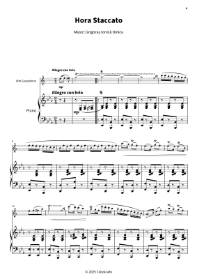 Hora Staccato - Sheet Music for alto saxophone and piano Grigoraș Ionică Dinicu