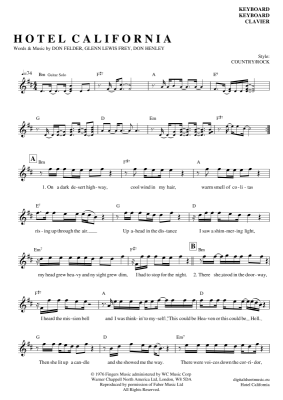Hotel California - Sheet Music for Keyboard Eagles