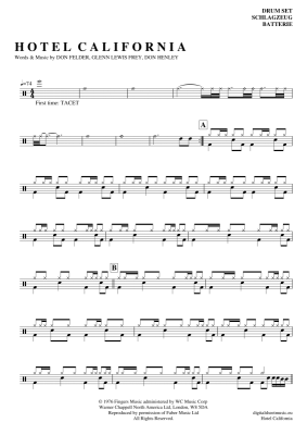 Hotel California - Sheet Music for Drums Eagles