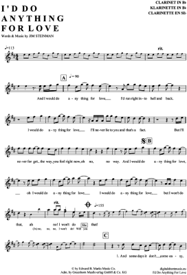 I´d do anything for love - Sheet Music for Clarinet in B-flat Meat Loaf