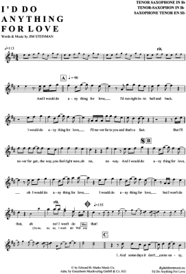 I´d do anything for love - Sheet Music for Tenor Saxophone Meat Loaf