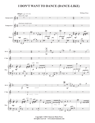 I Don´t Want to Dance (dance-like) - Sheet Music for clarinet in Bb, trumpet in C + piano William Price