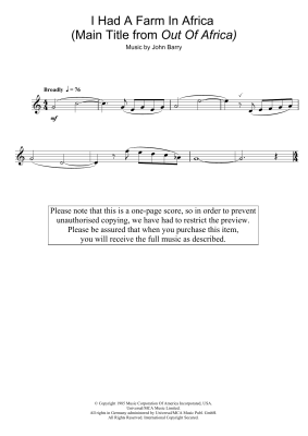 I Had A Farm In Africa (Main Title from Out Of Africa) - Sheet Music for John Barry