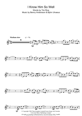 I Know Him So Well (from Chess) - Sheet Music for Benny Andersson, Tim Rice and Bjorn Ulvaeus