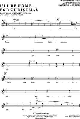 I´ll Be Home For Christmas - Sheet Music for Alto Saxophone Elvis Presley