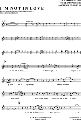 I´M Not In Love - Sheet Music for Tenor Saxophone 10cc