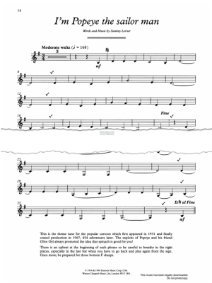 I'm Popeye The Sailor Man, composed by Sammy Lerner and arranged for clarinet with piano accompaniment.