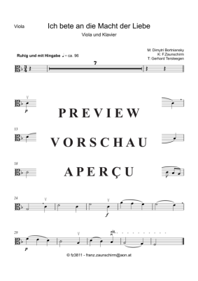 Ich bete an die Macht der Liebe (Viola Solo + Klavier-Playback) - Sheet Music for viola + piano Dmitri Bortniansky (Zaunschirm)