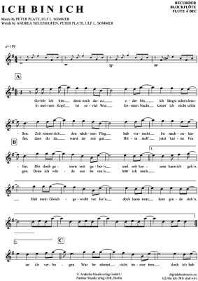 Ich bin Ich, Wir sind Wir - Sheet Music for recorder Rosenstolz