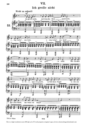 Ich grolle nicht, Op.48 No.7 - Sheet Music for Medium Voice and Piano Robert Schumann