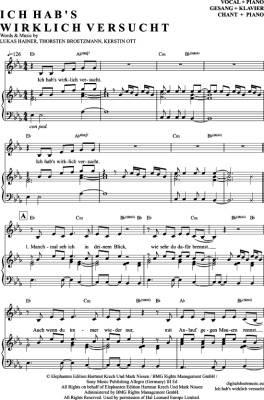 Ich Hab´S Wirklich Versucht - Sheet Music for Piano and Voice Kerstin Ott