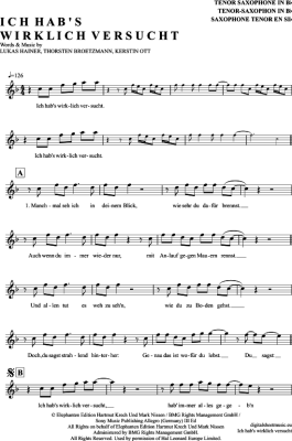 Ich Hab´S Wirklich Versucht - Sheet Music for Tenor Saxophone Kerstin Ott
