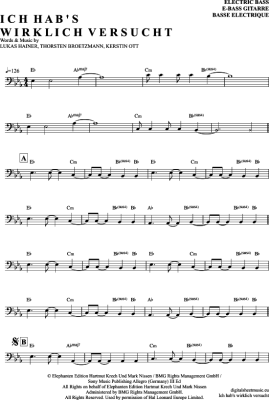 Ich Hab´S Wirklich Versucht - Sheet Music for Bass Guitar Kerstin Ott