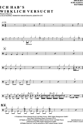 Ich Hab´S Wirklich Versucht - Sheet Music for Drums Kerstin Ott