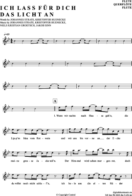 Ich Lass Für Dich Das Licht An - Sheet Music for transverse flute Revolverheld
