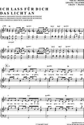Ich Lass Für Dich Das Licht An - Sheet Music for Piano and Voice Revolverheld