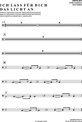 Ich Lass Für Dich Das Licht An - Sheet Music for Drums Revolverheld